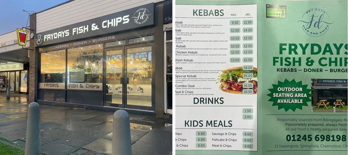 Since opening I have used this fish & chip shop on numerous occasions and I have to say I’ve never been dissapointed the food has always been cooked to perfection the chips just right and the batter is light and crispy and not dripping in oil like some places. The staff are always friendly and polite and the service is quick and efficient. The shop is very well presented and always looks spotlessly clean. They also do a very nice fresh kebab with lots of options I will definitely be returning and would easily say this is one of the best fish and chip shops in Chelmsford. Keep up the good work all the Frydays team!!!!